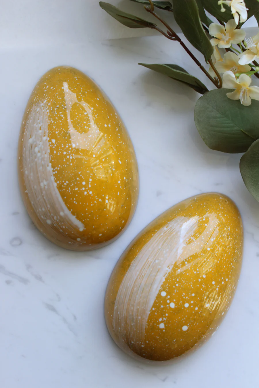 Tara Gartlan, a skilled pastry chef and chocolatier based in County Monaghan, has crafted truly decadent and imaginative Easter egg offerings, each one hand-painted, handmade and unique. Options include Raspberry and White Chocolate, Passionfruit Caramel (pictured), Double Fudge and Hazelnut Rocher, all priced at €48 each. Find more here.