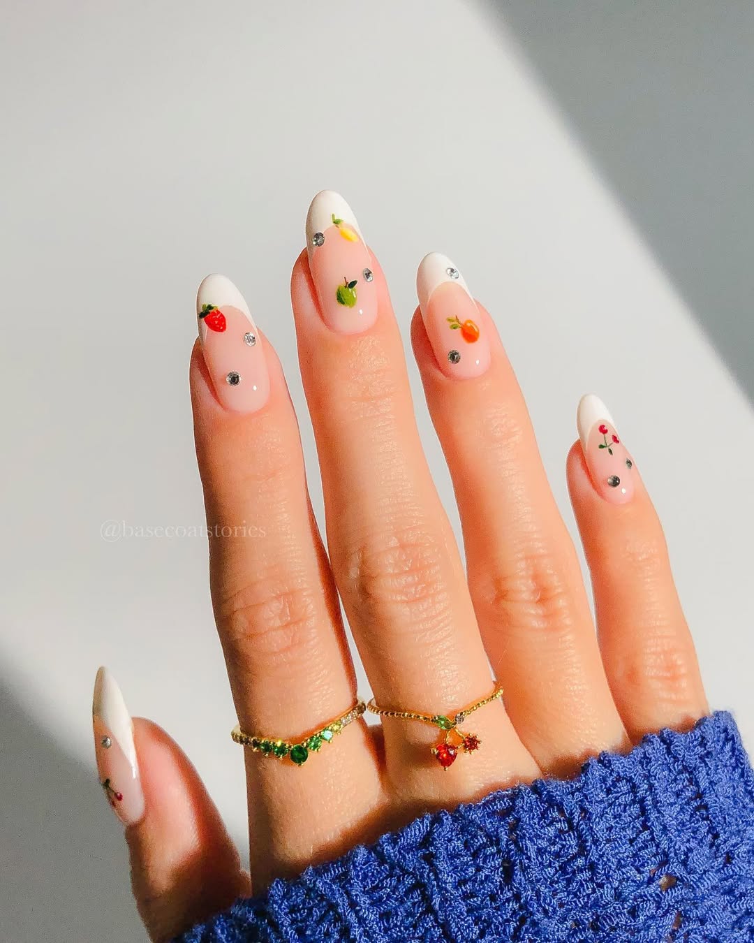 Tiny fruit designs, especially blueberries and cherries, are becoming a popular way to add a cute, seasonal accent to nails.